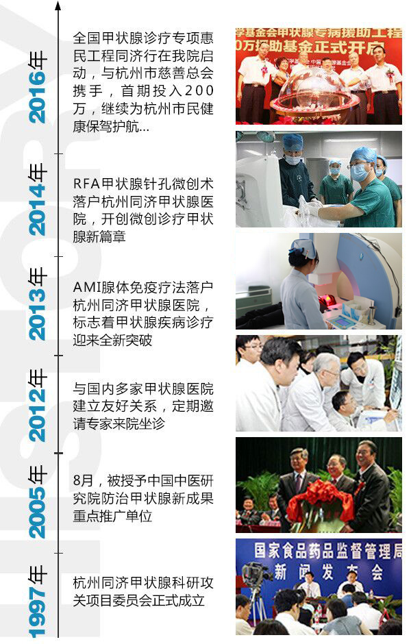 为此, 杭州同济甲状腺医院引进了时下前沿的甲状腺疾病治疗方法:AMI腺体免疫再建和RFA甲状腺针孔微创消融技术 。在临床应用中,这两种疗法的快速显著的疗效和低廉的费用深得患友及其家属的赞誉,并多次作为特色技术在省内专业学术论坛上进行全国性的推广。
